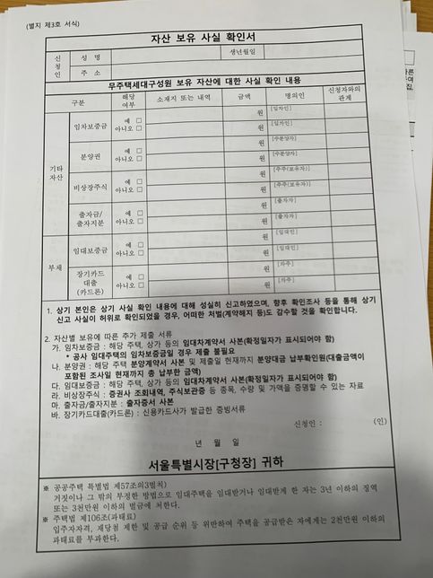 - 부동산경제Q. 영구임대주택에 신청하려는데 준비하는 서류에 궁금한 부분이 있어 질문 드립니다신청하는 서류에이런 목록이 있던데 제가 이번에 고시원으로 혼자 전입을 했습니다 보증금 십만원 내고요 저기 부채에 임대보증금칸이 있는데 저기다가 십만원을 쓰고 계약확인서를 제출해야하나요?? 처음해봐서 잘모르겠어요 도와주세요