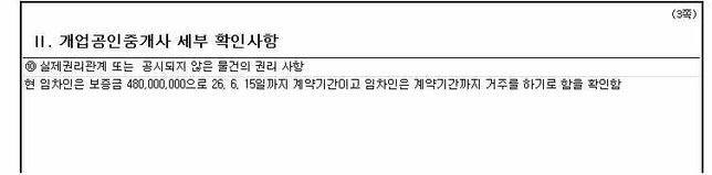 - 부동산경제Q. 세안고 매매시 확인설명서 실제원리관계는 어떻게 써야되나요??이번에 세안고 매매 계약을 한건하게되었는데등기부등본에는 전세권이 설정되어있지않습니다3쪽 10번항목에 실제 권리관계 또는 공시되지 않은 물건의 권리 사항란에현 임차인은 보증금 480,000,000으로 26. 6. 15일까지 계약기간이고 임차인은 계약기간까지 거주를 하기로 함을 확인함 이렇게 작성하는데 맞는건가요??더 추가해야되는게 있나요??