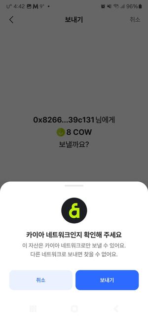 - 주식·가상화폐경제Q. 카우 토큰이 카카오 클립에 있는데요 업비트로 보내려고 하는데업비트 카우 주소를 만드니위에처럼 입금네트워크가 이더리움으로 나오네요, 근데 클립에서 보내기 누르니 아래와 같이 나와서요.카우 카이아. 이거 카이아로 보내면 되는 걸까요?최소 8개 보내기 누르니 카이아 네트워크로 나오네요.