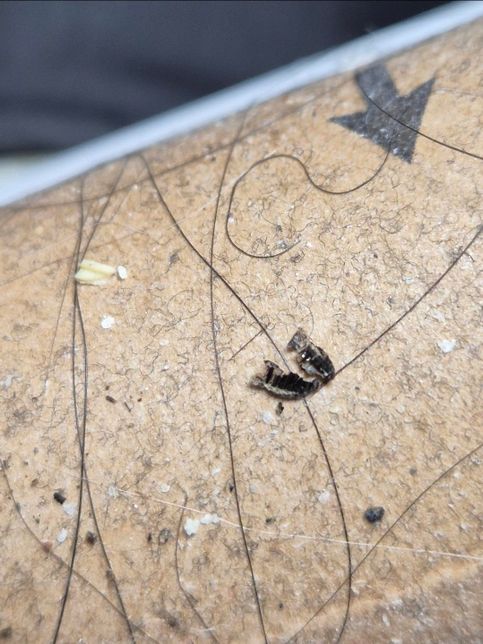 - 청소생활Q. 이거 바퀴유충탈피인지 봐주실 수 있나요원래는 합쳐진 모습인데 제가 돌돌이로 바닥 청소 하다가 발견한건데 제가 뭔지 보려고 떼다가 반으로 쪼개졌네요 벌레유충 껍질 같이 보이나요? 더듬이나 다리는 없었어요 안쪽에도 속이 비어있고 색이 검은색이 아니라 확대 하면 알다시피 베이지? 흰색? 인 거 같구요 그냥 파사삭 하고 반으로 쪼개지는 느낌이더라요 그리고 저 모습 그대로 합쳐진 타원형? 이였습니다 크기는 그냥 쌀 한톨? 정도 되었구요 아니면 그냥 물건에서 떨어진 조각이나 먼지인지 헷갈리네요 옆에 더러운 먼지들은 죄송합니다 ㅠ