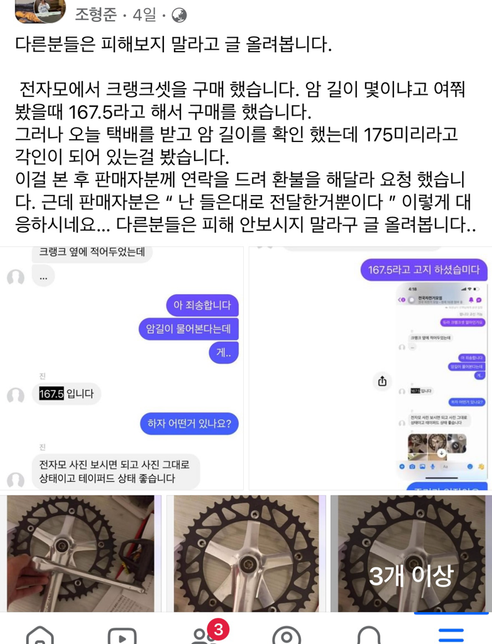 - 가압류·가처분법률Q. 중고거래 애매한 사기 질문 입니다판매할때 핸들바 미리수가 있는데 저는 기재 받은 대로 120미리라 기재를 하였지만 구매자는 받아보니 130미리라 했습니다 하지만 돈을 입금 받기전에 미리수가 표시되는 사진과 함께 첨부 하였고 구매자도 그걸 보고 돈을 입금하고 택배를 보냈는데 이제외서 환불 안 해주면 고소 한다는데 고소사안이 되나요 이게?
