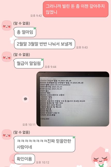 - 가압류·가처분법률Q. 계좌이체 내역이 없는 상황에서 카카오톡 대화의 증거능력소액사건으로 소제기를 했는데 계좌이체 내역을 증거로 내지 못한 대신 위 사진을 증거로 제출했습니다.채무자가 언제 갚겠다는 말만 하고 얼마를 갚겠다는 말은 안 했지만 돈을 갚겠다고 '확인이욤'이라고 하였는데, 이 경우에도 돈을 빌렸고 갚겠다고 말한 것으로 인정될 수 있을까요? 즉 증거능력이 있을까요?구체적 상황에 따라 답변이 달라질 수 있다는 점을 감안하고 답변 듣겠습니다. 감사합니다.