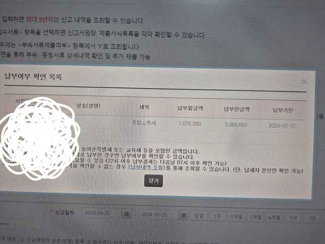 - 종합소득세세금·세무Q. 종합소득세 국세 납부가 안되요 도와주세요ㅠㅠ종합 소득세 신고 모두 마쳤습니다. 납부해야 할 세금이 107만원 정도 조회돼요. 지방세도 이미 납부했습니다. 그런데 조회된 세금이 아무리 납부를 할려고 해도 납부 버튼이 보이지가 않습니다. 신고는 이미 다 한 상태예요. 어떻게 해야 하나요? 세무서에가 가지고 납부를 해야 할까요? 날짜가 얼마 남지 않았는데 도움이 필요합니다