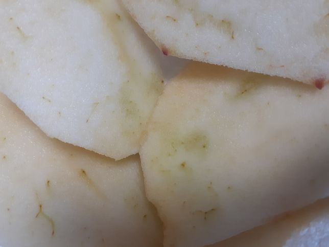 - 생활꿀팁생활Q. 깎아놓은 사과에서 초록색 줄기 같은 것이 나오는데 무엇인가요?냉장고에 깎아놓은 사과를 꺼내서 먹으려는데 각 조각마다 초록색 의 줄기같은 것이 많이 있습니다. 먹어도 되는건가요?