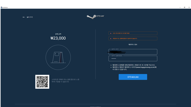 - 생활꿀팁생활Q. 스팀 상품권 결제에 대해서 질문있습니다.제가 해피머니 상품권을 30000원 정도 가지고 있어서 이걸 충전했다가 게임하는데 쓰려고 했는데요,스팀에서 해피머니 로그인을 해서 하려고 했는데, 로그인이 안되네요. 이거 왜 이런건가요?