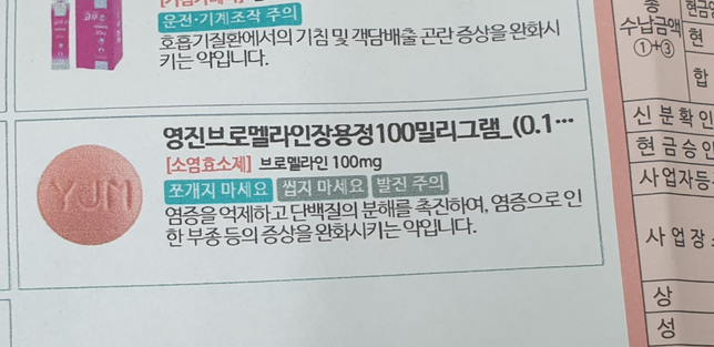 - 약 복용약·영양제Q. 영진브로멜라인장용정100mg 에 대해 문의드립니다제가 코로나로 오늘 목이 아프고 누런 가래가 있어서 약을 또 지어왔는데요. 영진브로멜라인장용정100mg 가 들어있더라구요. 그런데 제가 집에서 평상시에 비염으로 나우푸드 퀘르세틴을 매일 한알씩 먹고있거든요. 여기에도 브로멜라인이 165mg 들어있더라구요 제가 오늘 병원에서 지은 약에 들어있는 브로멜라인이 나우푸드 퀘르세틴에 들어있는 브로멜라인이랑 같은 성분인건가요? 같이 먹어도 괜찮나요? 과용량은 아닌가요?