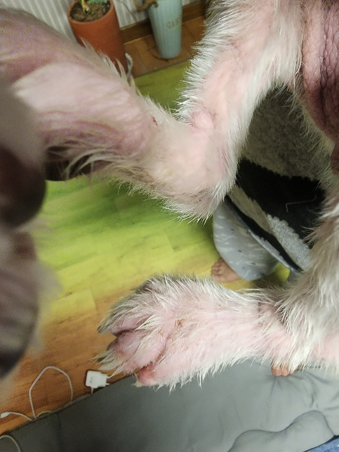 - 반려동물 건강반려동물Q. 강아지 발이 부어있습니다.도와주세요ㅠ저희집 강아지가 허벅지 부분을 너무 긁길래 어머니가 허벅지 부분을 붕대로 감아놓으시고집을 나갔다 오셨는데 붕대를 풀면서 보니 발이부어있습니다.원인을 알고싶습니다.병원을 가봐야할까요? 지금으로선 병원이 문을 다 닫은 상태라ㅠ
