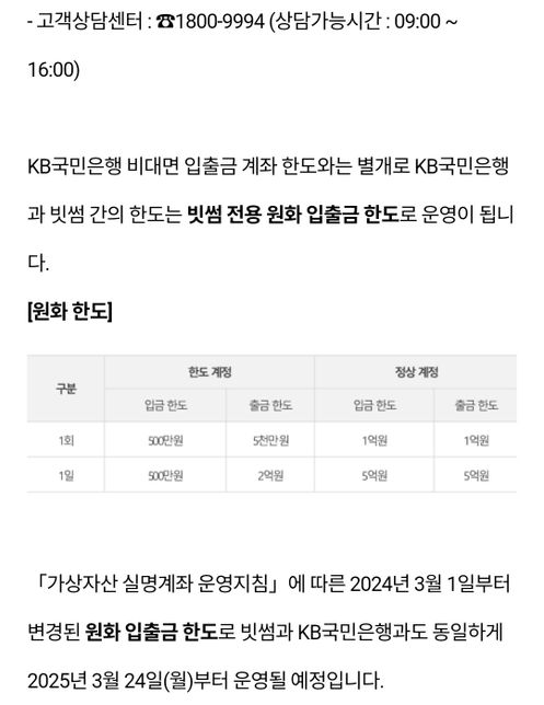 - 예금·적금경제Q. 빗썸 국민은행 한도계좌의경우 입출금이 무얼말하는건가요?보시는거처럼 빗썽 고객센터 답변인데요! 국민은행 한도계좌의경우 입출금이 무얼말하는건가요? 은행에서 한도계좌 1일 100만원출금으로 제한이 아닌! 사진처럼 1일에 뺄수있는 금액이 비대면 1억, 은행창구 2억까지 출금할수있다는걸까요?ㅠ 아휴! 번거로와워! 농협 조건 다 만들어놧더니!!!
