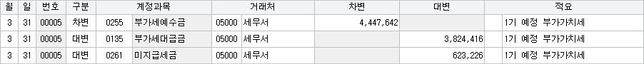 - 부가가치세세금·세무Q. 공통매입세액 분개 알려주세요ㅠㅠㅠ법인 결산중인데 여기가 면세+과세 매입이 있어서 공통안분을 하는데요....공통매입세액 불공제 된거 분개어떻게해야될까요? 위처럼 분개하는게 맞는지 알려주세요 재무상태표에 저렇게 하니까 부가세 대급금 잔액이 너무 많이남아서요ㅠㅠㅠ