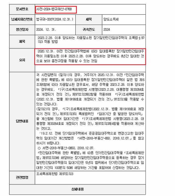 - 양도소득세세금·세무Q. 장기일반민간임대주택 중 아파트 8년이상 임대시 장특공 50% 관련해서 질문이 있어 글을 남깁니다.안녕하세요.2017년에 단기 임대사업자로 아파트를 등록하고 2020년 7월1일에 장기로 전환하여25년도에 해당 아파트를 양도할 예정입니다.이 경우 다른 요건은 충족되었다고 가정하고 단기 임대기간과 장기 임대기간을 합산해서 8년이 안되는데25년 3월이 아파트 자동말소 기간 8년이 되는날인 상황입니다.이 경우 임대의무기간 8년을 못채우고 자동말소 된 경우 아래 예규에 따라 장특공 50프로를 적용받을 수 있는 것일까요?