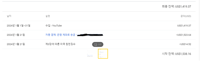 - 종합소득세세금·세무Q. 부가세 신고 관련해서 질문이 있어 글을 남깁니다.안녕하세요.구글(애드센스) 유튜브 수익이 있는 법인의 부가세 신고 관련해서첨부한 사진 속 부가세 매출로 잡아야할 외화 금액은시작잔액인 외화달러 1,538.16 일까요 아니면 수입-youtube 1,419.37 일까요?