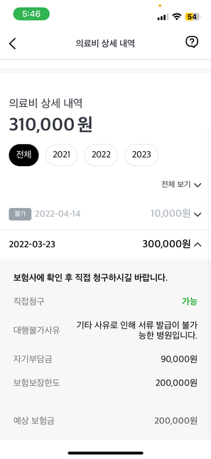- 의료 보험보험Q. 2년전 자비로 건강검진 받은 후 현재 보험 청구 가능?안녕하세요, 2년전에 자비 30만원으로 건강검진을 받은 후 현재 보험청구 대행 업체에서 조회해보니 못받은 환급건에 이 검진 건이 들어가 있더라구요. 그래서 이거 청구항까 하는데 가능한걸까요? 사진 첨부합니다.
