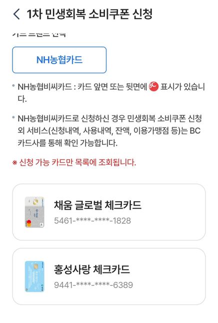 - 생활꿀팁생활Q. 민생지원금 타지역사용에 대해 질문있어요민생지원금 타지역사용 불가능할까요? 주민등록상 주소지는 경기도 이천시인데 홍성사랑체크카드로는 사용 불가능할까요? 카드 연결된거 두 개인데 어느 한쪽 제가 선택할 수는 없었고 (안눌려요) 자동으로 그냥 NH카드 다 공유되는거 같은데 저 중 하나가 홍성사랑카드인데 그래도 홍성에서는 사용 못하는거죠?정확히 아시는분 알려주세요 ~