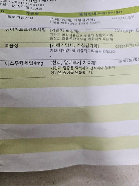 - 약 복용약·영양제Q. 처방받은 약 관련해서 궁금한점이 더 있어요!아래 사진처럼 약을 처방 받았는데 아스루카 세립은 하루 한번 먹으라고 되어있더라구요그래서 저녁약에 섞여 먹였구처방받은 약이랑 유제품 식사는 상관없다고 하셔서밥먹이고 우유먹은뒤 바로 먹였는데 상관없나요?