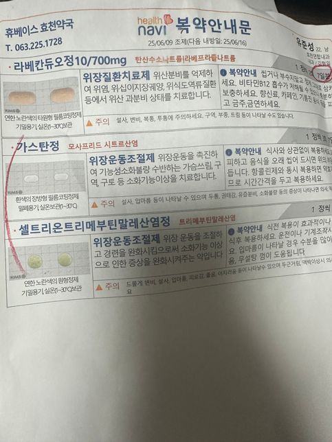 - 내과의료상담Q. 위장질환 질문 입니다 답변 부탁드려요6월 1일 새벽 야식을 먹은후 당일 오후 1시쯤흑미밥 한그릇 반과 전골을 먹구 식후 아메리카노 반잔을 먹었습니다카페인은 운동할때마다 먹었다가 한 일주일정더 섬취를 중단하고 6월1일 식후 아메리카노를 마셨습니다 6월 1일 오후 5시 이후 복부 불쾌감과 쑤시능 통증이 나타났고 6월3일 병원을 가서 약을 받았습니다프로부틴정카베스판연질캡슐정장생캡슐경동파니틴정 20밀리그람위 4개의 약을 처방 받았고호전이 된다는 느낌을 못받았습니더밥은 먹긴 하시만 걱정과 긴장때문에 많이는 먹지 못하고 체중같은경우는 이전 70키로에서 밥을 덜 먹어서 그런지 67.3까지 빠진 상황입니더음식은 초반엔 죽을 먹다가 일반식(김치,쌀,무우국같은 국)등을 먹고있습니다변은 설사를 할때도 있고 손가락 한마디 두마디정도의 크기의 어두운 갈색변을 볼때도 있었습니다그렇게 경과를 보다가 6월9일 대학병원 외래 교수님이 계신 병원에 갔는데 의사쌤께서 위염과 역류식도염이 동반되는거 같다 해서 7일분 라베칸듀오정가스틴정셀트리온트리메부틴말레산염정위 3개의 약을 받았습니다먹구 좀 나아진듯한? 느낌은 있는데불쾌감은 좀 있구 방금 변을 봤는데색은 정상색으로 나왔지만김치때문인지 아래 사진처럼 붉은 찌꺼기? 같은게 나옵니다 저번주에도 두번정도 저렇게 나온적이 있는데 위나 장에서 출혈일까여? 이번주 다 약을 먹어보고 저런 붉은게 보이면 내시경 받을려고 하는데위나 장 다 받으면 되겠죠??이미지가 포함된 질문이에요.