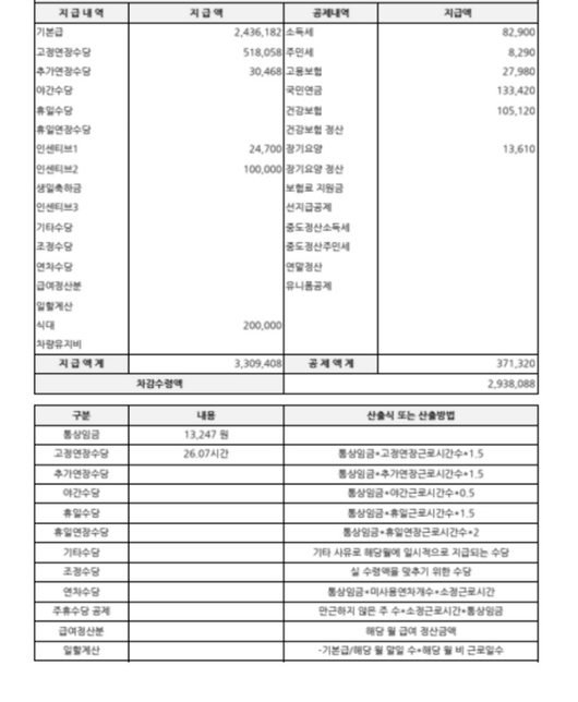 - 임금·급여고용·노동Q. 급여명세서 봐주세요 어려워요..급여명세서 봐주세요2월부터 월급280+식비20만원 맞춰달라고하고오늘 첨으로 받았는데 인센티브도 한 5만원정도 더 들어오는걸로 알고있었는데 급여가293만원 정도 들어온거예요 뭐 이것저것 떼어서 그런건가요?
