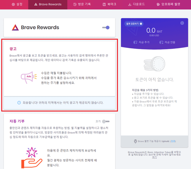 - 생활꿀팁생활베이직어텐션 토큰의 브레이브 브라우저는 어떤 특성을 가지고 있나요?A. 안녕하세요. 브레이브 브라우저에 대하여 답변드리겠습니다.브레이브 브라우저는 크롬을 개발한 개발진들이 만든 인터넷 브라우저로 인터페이스가 유사하고 크롬보다도 빠르다는 장점이 있습니다. 당연히 인터넷 이용에 있어 일반 인터넷 브라우저들 처럼 불편함은 없습니다.브레이브 브라우저를 이용한다고 해서 베이직 토큰이 주어지진 않습니다. Brave Rewards에서 광고를 시청하면 브레이브 토큰을 보상 받을 수 있게 됩니다. 그러나 아직 준비중인 관계로 서비스가 제공되지 않습니다.또한 브레이브와 협의단 사이트가 있는 경우 브레이브 토큰을 기부할 수 도 있습니다.따라서 브레이브 브라우저는 안정적이고 빠른 인터넷 서핑을 지원하고 있고 광고시청에 따른 토큰 보상이 주어지기 때문에 인기가 많은 것이라 생각됩니다.감사합니다.