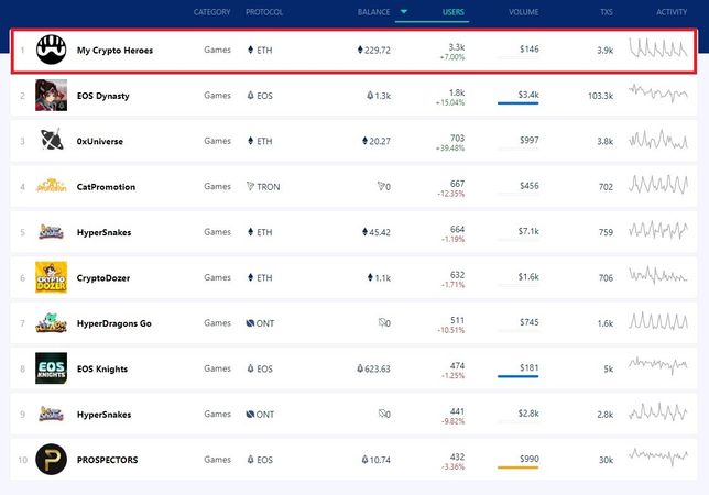 - 생활꿀팁생활블록체인 게임중에 이용자들이 많은 댑은 무엇인가요?A. 안녕하세요. 블록체인 게임중 가장 많은 유저를 확보한 게임에 대하여 답변드리겠습니다.현재 서비스되고 있는 블록체인 게임 중 가장 많이 이용하고 있는 게임은 이더리움 기반의 "마이 클립토 히어로즈(My Crypto Heroes)" 입니다.게임을 이용하는 유저수 : 3,319명으로 현재 댑레이더 기준 1위를 기록하고 있습니다. 2위는 이오스 기반의 이오스 다이너스티(EOS Dynasty) 1,752명입니다.마이 클립토 히어로즈 홈페이지 : https://dappradar.com/eth/clickout/944감사합니다.