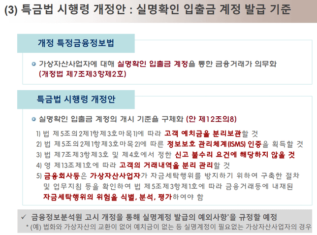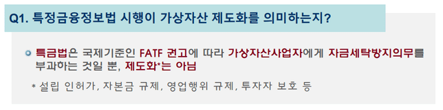 - 생활꿀팁생활우리나라 특금법이 무엇인가요?A. 안녕하세요. 암호화폐 특금법에 대하여 답변드리겠습니다.▣ 암호화폐 활용을 위한 최소한의 규제 - 특금법특금법은 특정 금융거래정보의 보고 및 이용 등에 관한 법률의 준말로 국제자금세탁방지기구(FATF) 권고사항에 맞게 국내에서 시행하는 암호화폐에 관한 사항이 추가된 법률 개정안을 말합니다. 특금법을 준수하기 위해서는 충분한 시간과 노력 그리고 자금이 필요하기 때문에 부실한 암호화폐 거래소들은 더 이상 운영을 할 수 없게 됩니다. 이와 함께 부실한 거래소에 단일 상장된 암호화폐는 더 이상 거래할 수 없기 때문에 개인의 자산을 잃을 수 있어 추가적인 패해가 발생할 수 있습니다.금융위원회 - 특정 금융거래정보의 보고 및 이용 등에 관한 법률 시행령 일부개정령안특금법 개정안 통과일 : 2020년 3월 5일(목)특금법 개정안 적용일 : 2021년 3월 25일(특금법 공포 후 1년 후)특금법 주요사항금융거래의 범위와 취급업소 정의암호화폐 거래소 신고제미신고영업 행정제재금융회사의 거래거절 의무화암호화폐 취급업소의 고객확인사항거래소 실명 인증계좌 사용 의무화자금 세탁방지 의무 부과이번 특금법 적용으로 암호화폐 거래소 사업에 대해 가상자산 서비스 제공자(VASP, Virtual Asset Service Provider)로 정식 분류되고 현 금융권과 동일한 Travel rule를 따르게 됩니다.신원증명과 테러자금세탁방지 기능에 대한 조치만 진행하고 있지만 이번 FATF규제안에는 "Travle rule"까지 모니터링 해야하는 사항까지 있습니다. 또한 이번 조치를 통해 해당 암호화폐가 이동하는 지갑의 소유자가 누군지까지 증명해야하기 때문에 암호화폐 거래소들은 AML솔루션을 통해 이를 충족해야 합니다.그 동안 무법천지나 마찬가지던 암호화폐 산업의 기초로 작용될 첫사례라 볼 수 있습니다. 이로 인해 블록체인 기술과 함께 암호화폐 산업도 발전할 수 있는 기회가 만들어졌으며 앞으로 암호화폐 다양한 금융산업에 적용을 기대해 볼 수 있다고 생각됩니다.따라서 특금법 개정안 적용으로 암호화폐 거래소 운영에 필요한 최소한의 운영정책을 마련하고 현 금융권과 동등한 수준으로 암호화폐 거래 이용자들에 대한 신원확인을 목적으로 하고 있습니다. 이로 인해 현체제 보다 투명하고 안전한 암호화폐 거래를 보장할 수 있게 되었습니다.국제 FATF에서는 국내 암호화폐 거래소에 대해 사열을 실시 했으며 "암호화폐 규제 가이드라인 권고안"을 제시하였습니다.FATF 암호하폐 국제 기준은 아래와 같습니다.위험기반 검사 및 감독가상화폐 거래소 및 운영자 신고/등록의무불이행 시 제재가상자산 송금시 송금인, 수취인정보 수집/보유 등FATF 권고사항발송자 이름 명시거래를 위한 해당 계정에 사용된 발신 계좌번호 명시거래 시행 기관은 해당 거래자의 개인정보(생년월일, 출생지 등) 식별 가능한 실제 주소 및 국가/고객 식별번호 명시수혜자의 이름 명시거래를 위해 처리되는 계정의 수혜자 계좌번호 명시감사합니다.