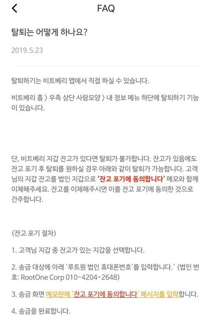- 생활꿀팁생활아하토큰 들어있는 비트베리지갑 카톡아이디를 탈했는데 복구할수있을까요?A. 안녕하세요. 비트베리 지갑 탈퇴에 대하여 답변드리겠습니다.질문자께서 비트베리 지갑 탈퇴시 비트베리 지갑에 암호화폐가 보관된 경우 탈퇴가 불가능합니다. 다른 곳으로 이체한 후 탈퇴를 하거나 비트베리 지갑에 보관된 암호화폐에 대한 소유권(잔고) 포기에 동의하여야만 탈퇴가 가능합니다.따라서 잔고포기에 동의하고 탈퇴하신 경우라면 기존에 보관된 암호화폐에 대한 소유권을 잃었기 때문에 암호화폐 복구가 불가능합니다.자세한 사항은 비트베리측에 직접 문의해보시는 것이 좋을거 같습니다.감사합니다.