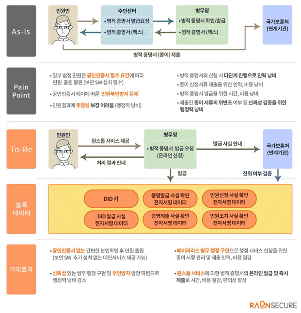 - 생활꿀팁생활블록체인을 사용해서 효율성을 내고 있는 산업 분야가 있나요?A. 안녕하세요. 블록체인 기술을 활용한 산업분야에 대하여 답변드리겠습니다.블록체인을 적용가능한 산업분야는 상당히 많습니다. 그러나 최근 가장 이슈가 되고 있는 것 중 하나가 금융분야와 인증분야 입니다.일부 기업에서는 실제 서비스 준비중에 있으며 블록체인 활용을 점차 넓혀가고 있으며 최근에는 전자신분증 및 주민등록초본 발부가 가능하게 되었습니다.인증분야에서는 금융분야와 함께 다양한 신원인증 수단으로 활용하고 있으며, 블록체인을 통해 전자신분증 및 주민등록초본 발부가 가능하게 됩니다.관련뉴스 : 행안부 “주민등록등본 스마트폰 발급, 블록체인으로 위변조 막는다”관련뉴스 : 이니셜DID연합 "내년 초 블록체인 기반 모바일 전자증명 선보인다"관련뉴스 : 블록체인 활용 ‘모바일 운전면허증’ 나온다니셜 DID 연합은 과학기술정보통신부와 한국인터넷진흥원(KISA)이 주관하는 2019 블록체인 민간 주도 국민 프로젝트를 계기로 결성된 컨소시엄입니다.블록체인 이니셜 DID연합 소속 기업으로 KEB하나은행, 우리은행, 코스콤, SK텔레콤, LG유플러스, KT, 삼성전자, 현대카드, BC카드, 신한은행, NH농협은행 등이 11개 사가 참여하고 있습니다.병무청은 라온시큐어와 함께 블록체인 인증 플랫폼을 공동으로 구축할 계획입니다. 이번에 도입되는 플랫폼은 블록체인 분산ID(DID : Decentralized Identifiers) 기반 인증 플랫폼으로 포털 서비스 이용에 필요한 인증서 전자서명 및 부인방지를 대체하게 되며, 병무행정 처리 과정이 투명하고 공정하게 운영이 가능하게 됩니다.또한 이어 온라인 발급 및 즉시 제출 등 원스톱 서비스로 제출 시간 및 비용 절감, 편의성 등이 향상됩니다.참고로 이번 DID인증 플랫폼은 이오스(EOS) 블록체인 기반으로 작동하게 됩니다.KEB하나은행GLNGLN(글로벌 로열티 네트워크)’이라는 이름의 국제 지급결제망으로 전 세계에 가맹점을 보유한 비자, 마스터카드와 비슷한 방식입니다.고려대 학생증 발급고려대 학생증카드 발급에 블록체인을 적용하는 기술을 개발 중입니다.2019년 연내 도입을 목표로 고려대가 학적부를 블록체인에 저장해 은행과 공유하면, 학생증 발급 기간을 2주에서 2~3일로 줄일 수 있게 됩니다.블록체인ID 인증 서비스SK텔레콤은 ‘블록체인 ID 인증 플랫폼’을 하이퍼레저 패브릭으로 구축 중입니다.신한은행블록체인 자격 검증시스템증명 서류를 블록체인에 올려 은행과 공유하는 서비스입니다.2019년 5월 의사 대상 대출상품인 신한 닥터론에 우선 적용했으며, 기존에는 대출 신청한 의사가 대한병원의사협의회 정회원임을 확인 받는 과정이 2~3일 걸렸으나 이젠 거의 실시간으로 가능하게 되었습니다.장외파생상품 거래 플랫폼은행과 금융기관이 계약을 체결할 때 필요한 체결 정보의 확인 과정을 자동화가 가능하게 됩니다.골드인증서은행에서 골드바를 사면 종이 보증서를 함께 써주게 되고 이 보증서 정보를 블록체인에도 저장해, 종이 보증서를 잃어버려도 골드바를 인증해줄 수 있게 됩니다.그룹 통합인증 올패스(가칭)신한금융그룹의 여러 모바일 애플리케이션 중 한 곳에 로그인하면 그룹내 나머지 앱에서도 자동 로그인되는 서비스입니다.블록체인 회사 투자신한은행은 지난 28일 블록체인 개발사 블로코에 20억원을 투자하고 있습니다.지역화폐신한은행은 2018년 8월 KT와 지역화폐 등 블록체인 신규 사업 추진하여 KT가 개발한 KT 네트워크 블록체인을 활용하게 됩니다.디지털 자산 보관서비스고객의 디지털 자산(암호화폐, 의료정보, 신용정보 등)을 보관해주는 모바일 금고 서비스입니다.우리은행위비코인위비코인은 선불충전방식으로 가격이 안정적인 스테이블 코인(암호화폐)입니다.블록체인ID 인증 서비스우리은행은 KEB하나은행 등과 함께 SK텔레콤이 추진하는 블록체인 ID 인증 플랫폼의 노드 운영을 맡을 예정입니다.KB국민은행마곡페이디지털화폐의 일종으로 이용자가 마곡페이로 결제하면 국민은행이 결제금액을 현금으로 사후 정산하는 방식입니다.디지털자산 수탁아톰릭스랩사의 암호기술인 다자간 보안 컴퓨팅(Secure MPC, Multi-Party Computation)를 활용해 암호화폐 등 디지털 자산을 안전하게 보관하는 수탁 서비스를 개발 중입니다.NH농협은행P2P 금융 원리금수취권증서P2P 투자 종료시 투자자가 받을 원금과 이자가 적혀 있는 문서로 투자자는 NH스마트고지서라는 NH농협은행의 모바일 애플리케이션(푸시서비스)을 통해 증서를 조회할 수 있게 됩니다.계열사간 협업계약서를 블록체인에 올리면서 업무 프로세스를 디지털화하는 방안을 검토하고 있습니다.IBK기업은행테라와 업무협약양사는 블록체인 기술 공동연구를 통한 블록체인 기반 사업모델 개발과 실용화를 위해 상호 협력한다는 계획입니다.다른 분야도 블록체인 기술을 적극 도입하고 있지만 금융과 인증분야는 실제 적용가능한 서비스를 선보이고 있어 빠른 시간안에 대중성을 확보하지 않을까 생각됩니다.감사합니다.
