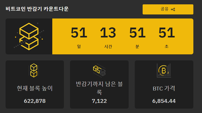 - 생활꿀팁생활비트토인 2020년 반감기가 언데이며 반감기에 토인보상을 해 주나요A. 안녕하세요. 비트코인 반감기에 대하여 답변드리겠습니다.2020년 4월 14일(화) 기준 비트코인 반감기까지 남은 블록수는 7,122개이고 2020년 6월 4~6일 정도에 발생할 것으로 예상하고 있습니다. 물론 초단위까지 정확히 예측하기는 어렵지만 대략적인 일정예측으로 참고하시면 되겠습니다.감사합니다.