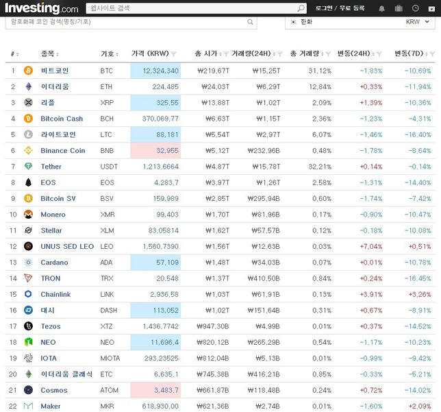 - 생활꿀팁생활코인마캣캡에 등재되지않은 모든 코인들을 조회할수 있는 사이트가 있을까요?A. 안녕하세요. 코인 조회에 대하여 답변드리겠습니다.질문자께서 말씀하셨다시피 암호화폐(코인 및 토큰)의 수는 상당히 많이 존재합니다. 그러나 등재 되어 있지 않는 코인을 조회를 제공하는 사이트는 없는 것으로 알고 있습니다.필요하다면 각 블록체인 네트워크의 스캔 사이트를 이용하여 찾는 방법이 유일합니다.암호화폐에 대한 정보와 랭크를 제공해주는 "Investing.com"이라는 곳이 있으니 참고하시기 바랍니다.Investing.com총 2,683개의 암호화폐 정보 및 랭크순위를 제공하고 있습니다.https://kr.investing.com/crypto/currencies감사합니다.