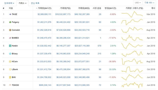 - 생활꿀팁생활거래량 기준으로 세계 10대 코인 거래소는 어디일까요?A. 안녕하세요. 거래량 기준 세계 10대 거래소에 대하여 답변드리겠습니다.코인마켓캡 기준 거래량 기준 10대 거래소는 아래와 같습니다. (보고된 거래량 / 24시간 기준)1위 : TAGZ / $2,906,690,1112위 : Folgory / $1,402,211,0763위 : Coinsbit / $1,262,328,6184위 : BitMEX / $1,048,470,4705위 : Hotbit / $1,038,552,4426위 : Bilaxy / $1,037,339,4767위 : HCoin / $1,033,612,0038위 : LBank / $1,031,412,7549위 : BiKi / $1,004,788,50210위 : TOKOK / $995,030,143거래량이 많은 거래소라 한다고 해서 신뢰성과 보안성이 높다고 볼 수 없우며, 소위 묻지마 거래소나 먹튀 거래소는 아니라고 할 수 있습니다. 단지 거래량이 많기 때문에 암호화폐 거래가 활발하다는 장점이 있습니다.감사합니다.