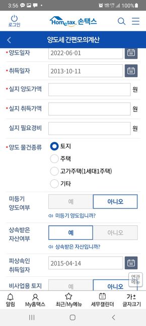 - 양도소득세세금·세무Q. 상속받은 토지 양도시 계산방법2013년도에 부모님이매입해서2015년도에 공시가로 상속받았습니다2022년도에 양도시 손택스 예상세액 계산에 취득날과 취득가액을 2013년도 취득가격인가요?아니면 상속받은 2015년도 상속받은가격인가요?피상속인 취득날짜가 별도 표기란이 있어서 여쭤봅니다