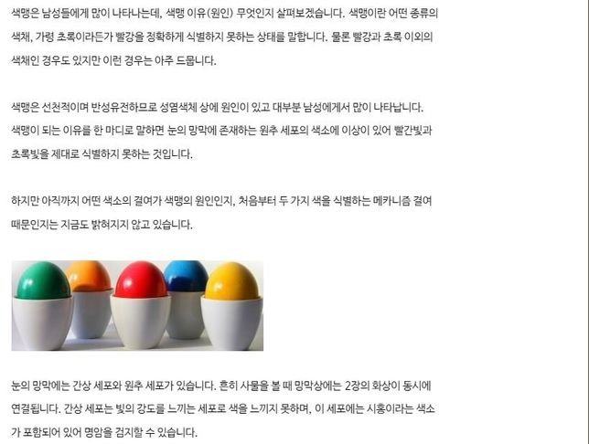 - 생활꿀팁생활색맹인 사람은 모든색을 구별할수 없나요?A. 안녕하세요. 자드락비입니다.색약은 색약안경이나 렌즈를 착용하고 운전면허 시험을 볼 수 있으나 색맹인 경우는 운전면허가 불가다.우리나라 교통신호는 적색, 황색, 녹색인데 색맹은 이 같은 3색을 구분하지 못하기 때문이다.‘색각 장애인에게 색상변환기술로 원 색상과 가까우면서도 구별이 가능한 색으로 바꿔주면 원래 이미지와 비슷하게 구별할 수 있게 된다.한국전자통신연구원(ETRI)에서 개발된 이 기술은 2004년 10월 국제표준화기구(ISO)에서 엠펙-21(MPEG-21)의 국제표준으로 채택되었다.’ ▲ 운전면허 시험자격. ⓒ도로교통공단그렇지만 아직도 우리사회에는 색맹으로 인해 제한되는 영역이 더러 있는데 운전면허도 그 중 의 하나다.도로교통공단 운전면허 시험자격에 의하면 신체검사 기준에 “색채식별 : 적,녹,황색의 색채식별가능”이라고 되어 있다. 적색, 녹색, 황색의 구별이 안 되는 사람은 운전면허를 취득할 수가 없다는 것이다.출처1 : http://www.ablenews.co.kr/News/NewsContent.aspx?CategoryCode=0030&NewsCode=003020170821154621131570출처2 : https://sskn3882.tistory.com/147