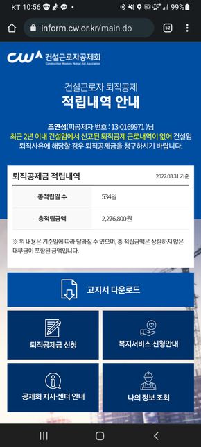 - 임금·급여고용·노동Q. 건설근로자 퇴직금 신청할수 있나요?예전에 3년정도 막노동한게 적립된거 같은데2년전에 회사에 취업해서 이런게 날라온거 같아요전액수령 가능한지와 직접방문해서 신청해야하는지 궁금합니다.그리고 신청에 필요한 서류가 따로 있는지 궁금합니다.나이는 31세입니다.