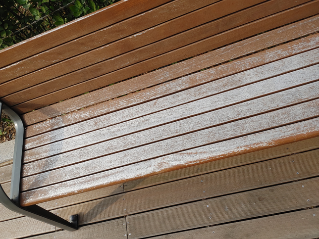 - 생활꿀팁생활Q. 산책로 벤치에 있는 허연 물질들의 정체가 무엇일까요 산책로에 있는 벤치들 보면 가끔 저렇게 허옇게 돼있는 것들 있던데 저거 정체가 뭔가요? 그리고 저기에 앉아도 되나요? 이미 앉았는데