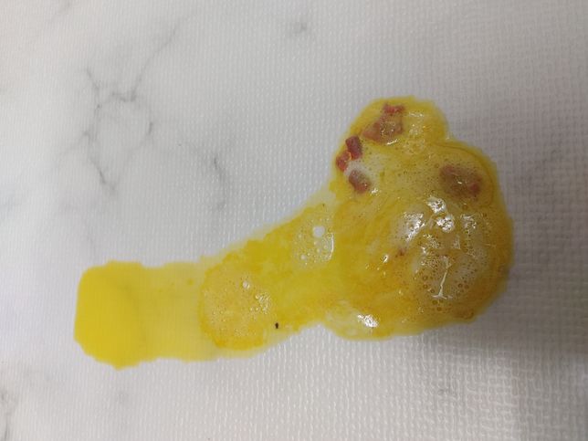 - 반려동물 건강반려동물Q. 평소보다 샛노란 색이고 걸죽한 강아지의 토강아지 토가 평소의 공복토와 달리 계란 노른자처럼 훨씬 걸죽하고 양이 많고 샛노란 색이에요. 왜이럴까요? 저기 안에 나온 빨간 것들은 간식일까요. 왜 이런 걸가요 어디가 아픈 걸까요..