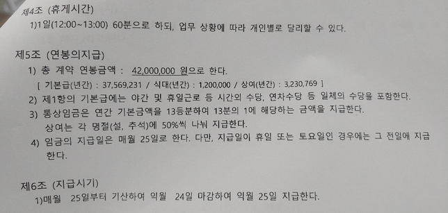 - 임금·급여고용·노동Q. 저는 1년 근무 후 퇴직금 얼마를 받게 되나요? 연봉 4200에 위사진처럼 지급됩니다.계산하면 얼마가 나오는지 알려주세요.답변부탁드립니다.감사합니다! 조은 하루되십시요