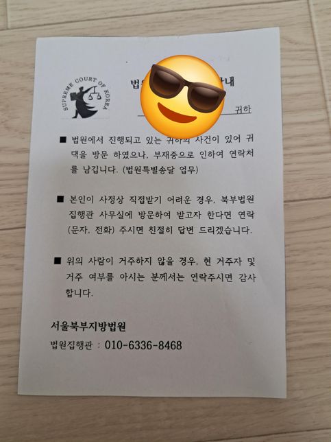 - 민사법률Q. 법원 전달관(?)이 토요일 오늘 전달하러 왔는데요민사중인데 민사 화해결정정본 2회 수령 못했다고 토요일에도 오나요? 참고로 이의없으며 줏어들은 거지만 2회 등기 수령 안하면 확정으로 알고 있고 1인가구라 그동안 못받았습니다이거 계속 수령 못할시 큰일 납니까?