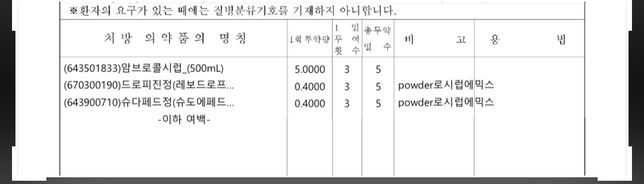 - 이비인후과의료상담Q. 기침으로 약을 처방 받았는ㄷㅔ용량 좀 봐주세요아이가 갑자기 기침과 목소리가 이상하고 그릉소리가 나서 연휴로 병원을 못갈까봐 비대면으로 처음 약응 타봤습니다. 아이는 44개월 만 3세입니다. 약 용량이 적당한가요?암브로콜 말고는 처음 보는 약들이라 문의드려요. 그리고 목감기에 도움이 되는 약재인지 다시 처방이 필요한지 궁금합니다.이미지가 포함된 질문이에요.
