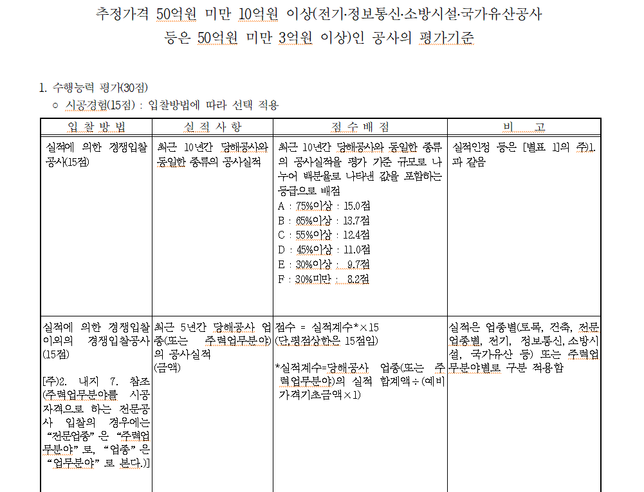 - 생활꿀팁생활Q. 입찰 실적에 대해 궁금해서 질문 올립니다.요즘 입찰 공부를 하는데 이해가 안되는 부분이 있어서 여쭤봅니다.기초금액이 40억 공사하고 했을때 당해공사 10년간 이 있고 5년간이 있습니다.만약 10년 실적이 50억 5년실적이 25억이라고 하면실적점수를 어떻게 계산하는거에요?~종목은 전기입니다.