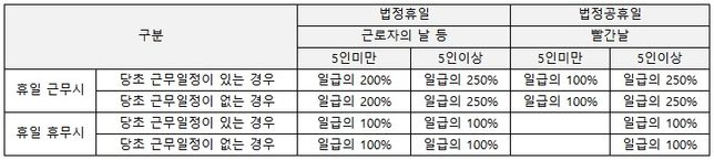 - 임금·급여고용·노동Q. 시급제 직원의 공휴일 및 휴일, 근무수당 산정관련 질의안녕하세요.시급제 직원으로 입사시 근로계약서상 입사일~계약종료일(통상 1년)기재로 근로계약을 체결하고기간내에 월단위 근무일정(매월 변동이 있을 수 있음)을 편성하여 근무하는 형태입니다.해당 시급제 직원에 대한 공휴일 및 휴일근무에 대한 수당산정 및 지급율 기준을 아래 기준을 참고로 시행하고 있는데 맞는건지요?감사합니다.