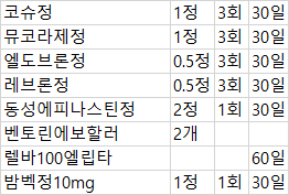 - 영양제약·영양제Q. 41kg 6학년 남자아이가 복용할 약 문의삼아아토크가 품절이라고 해서 스트레스를 많이 받네요.코슈정 1정 3회 30일 뮤코라제정 1정 3회 30일 엘도브론정 0.5정 3회 30일 레브론정 0.5정 3회 30일 동성에피나스틴정 2정 1회 30일 벤토린에보할러 2개 렐바100엘립타 60일 밤벡정10mg 1정 1회 30일이렇게 처방 받아 먹어보려고 합니다. 약사님들 보시기에 괜찮을까요?41kg에 13살 남자아이, 비교적 건강하고 잘 뛰어 놉니다. 증상은 코막힘, 콧물, 천식으로 기관지 수축(답답함) 입니다. 렐바를 한번 꾸준히 써볼까 생각중입니다. 알베스코는 아이가 싫다고 하네요.