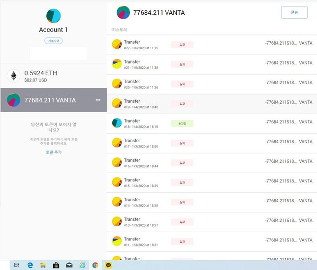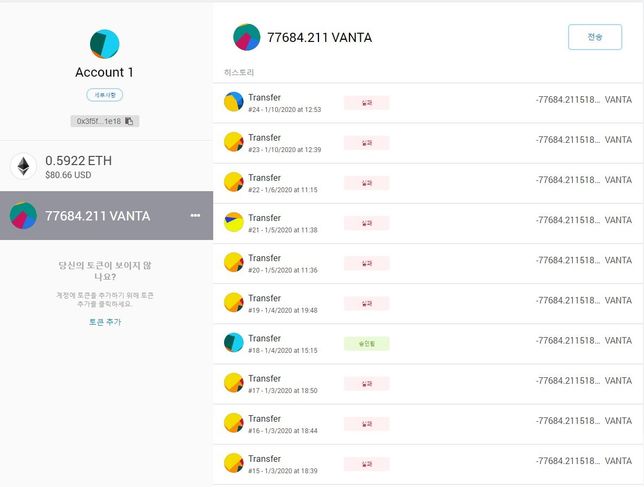 - 생활꿀팁생활Q. 메타디스크 반타네트워크 토큰 전송실패 이유는??메타디스크에서 코인원거래소로 반타네트워크 토큰 전송할려고 하는데요자꾸 실패가 나요 이더스캔엔 저렇게 뜨고요 가스가 부족하단 뜻인가요??근데 저는 첫번째 사진에서와같이 이더리움이 충분히 있는데 자꾸 전송 실패 하는이유가 뭐죠?? 사진좀 잘보시고 쉬운설명부탁드려요왕초보라서 대충 말해주시면 못알아 들어요 ㅠㅠ