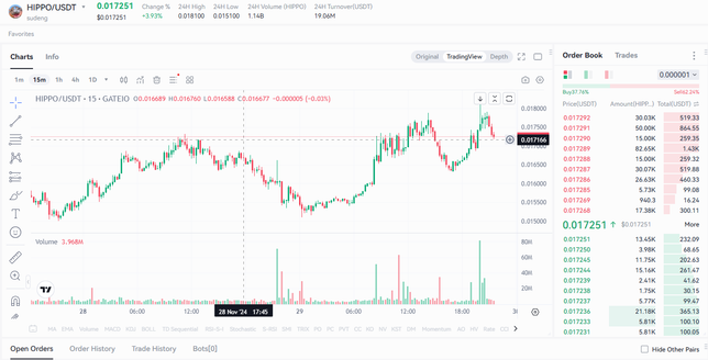 - 주식·가상화폐경제Q. HIppo가 오늘 UTC +9까지 0.018$를 갈 수 있을까요?안녕하세요!밈코인을 사랑하는 코린이입니다.그런데 오늘 이러한 생각이 들었습니다. HIppo가 오늘 UTC +9까지 0.018$를 갈 수 있을까요?차트는 다음과 같습니다.