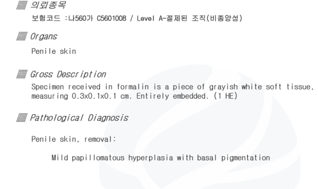 papillomatous라는 것은 해당 조직의 모양을 말합니다. 성기 사마귀라면 HPV 원인일 가능성이 높으나 HPV 가 아닌 다른 질환에서도 유두종형태를 보일 수는 있습니다.