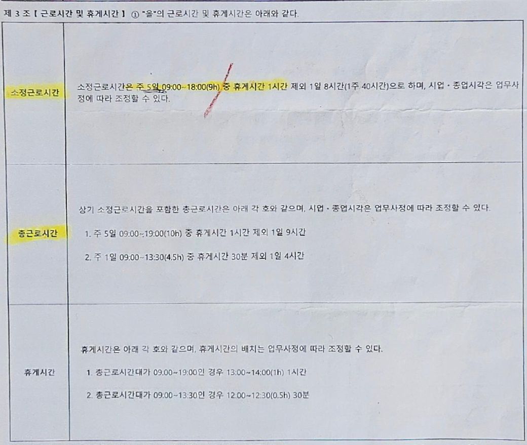 총근로시간 보면 주 6일 근로계약서 같아서요