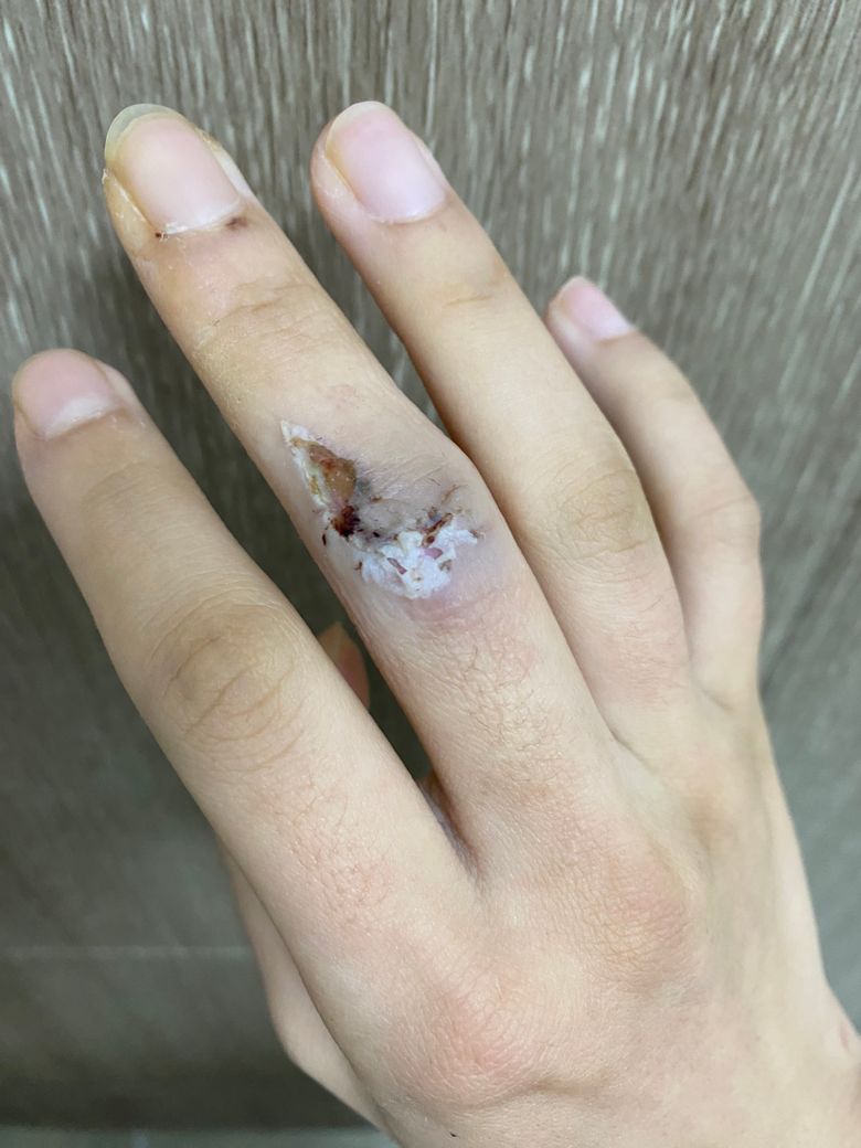 손가락 건봉합 인대봉합 힘줄봉합 수술 후 수술 부위가 회색이에요 왜 이렇죠?
