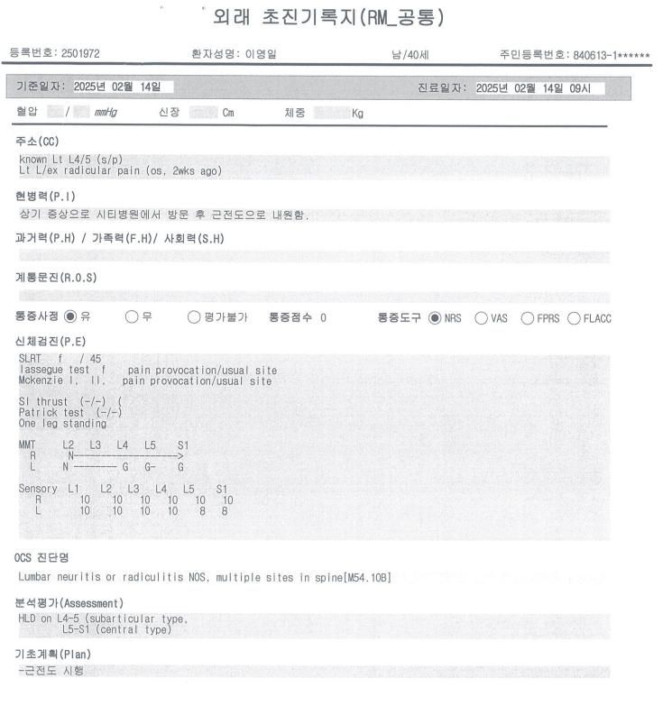 20년전 수술로 인하여 신경손상이 의심되는데 현재 하지방사통 및 종아리 발가락 등 오래 걷지못하고 일상생활에 지장이 옵니다. 감사합니다