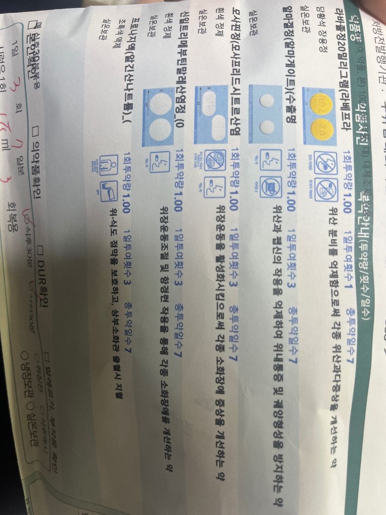 3일전에 계속 속쓰림이랑 헛구역질 때문에 병원을 가서 이 약들을 처방 받았습니다. 다음날 부터 먹기 시작했는데 6일 아침에도 위경련이 갑자기 왔었고