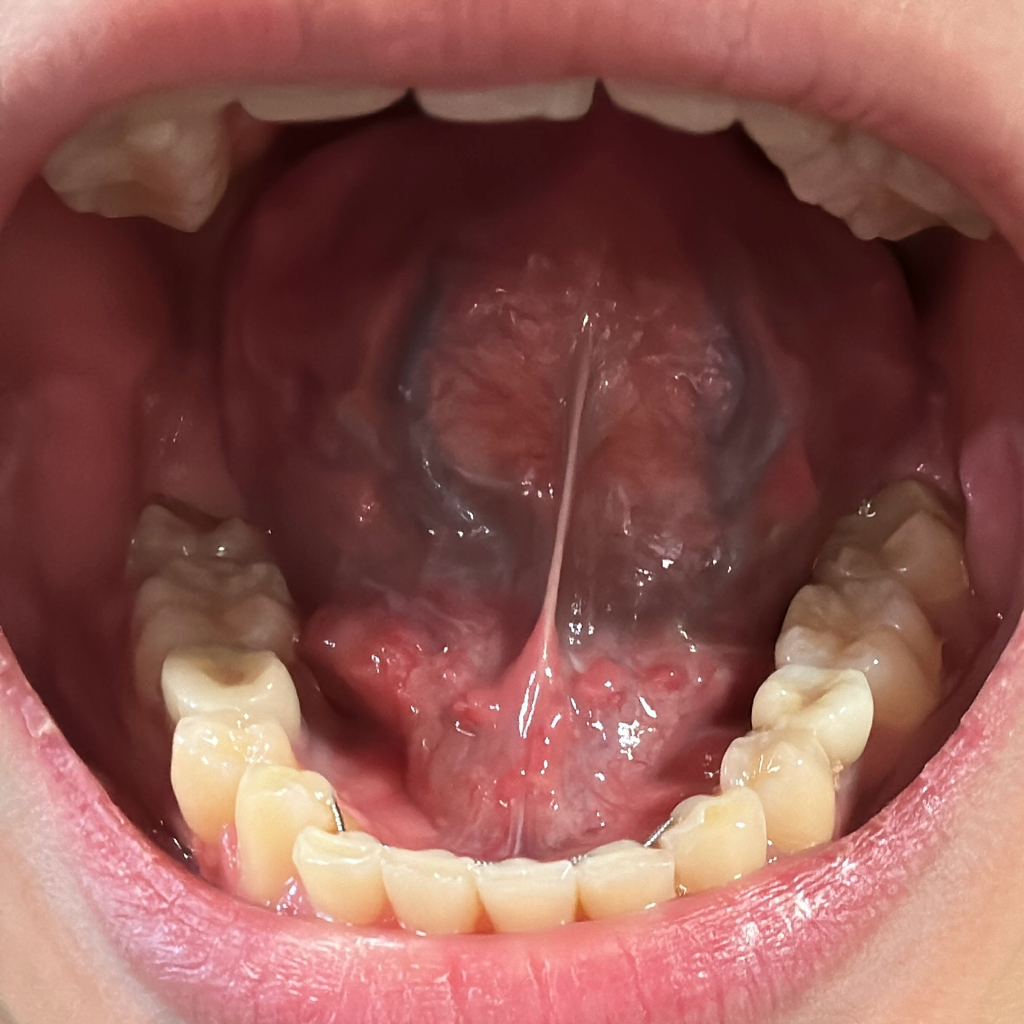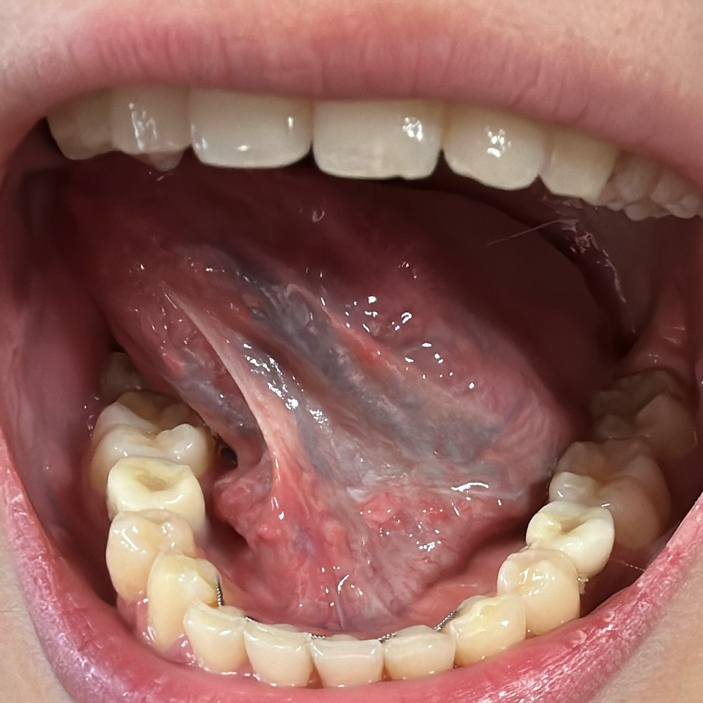 안녕하세요. 이송재 의사입니다. 올려주신 사진을 보았을 때 혀 아래쪽에는 특별한 병변은 관찰 되지 않습니다. 통증이나 다른 증상 없으면 지켜보셔도 됩니다