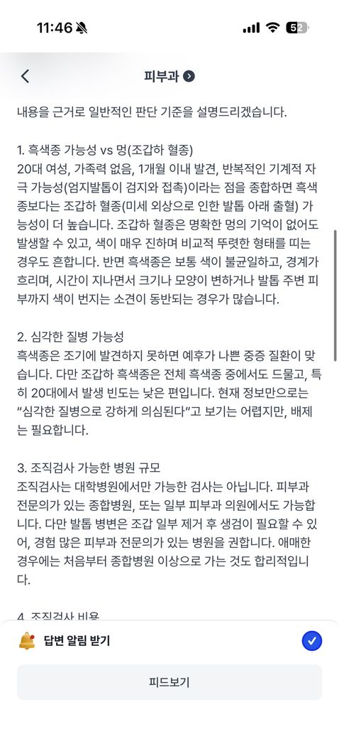 5. 여전히 흑색종일 가능성이 있을까요? 멍일까요?..