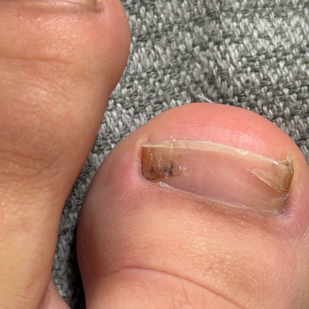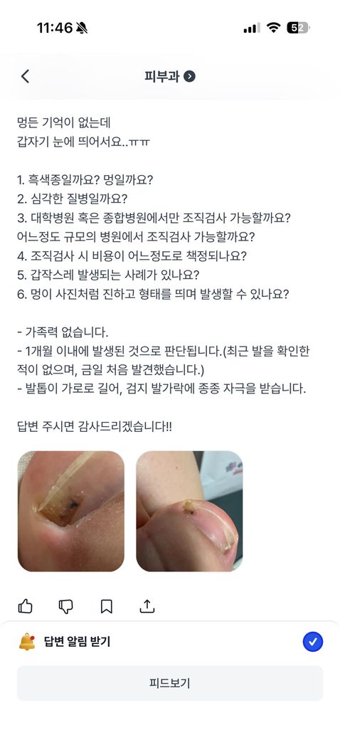 왼쪽 엄지 발톱의 검은 점 흑색종일까요?