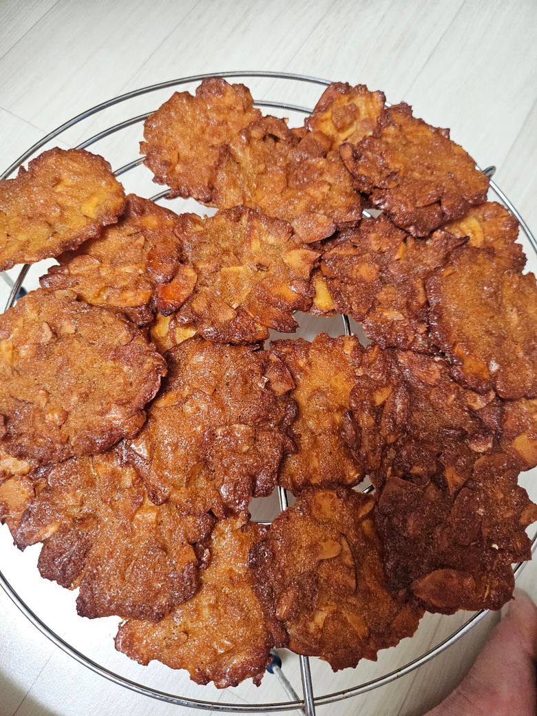 아몬드가루, 알룰로스가루,기버터,슬라이스 아몬드로 튀일을 만들었는데 왜 과자처럼 안바삭 할까요? 진짜 진짜 얇게 만들었는데.. 더 얇게는 만들수 없는데.. 아몬드가루가 원래 그런건가요? 아님 제가 과자처럼 완전 바삭함을 바라면 안되는건가요? 아님 박력분을 섞어야 하나요?